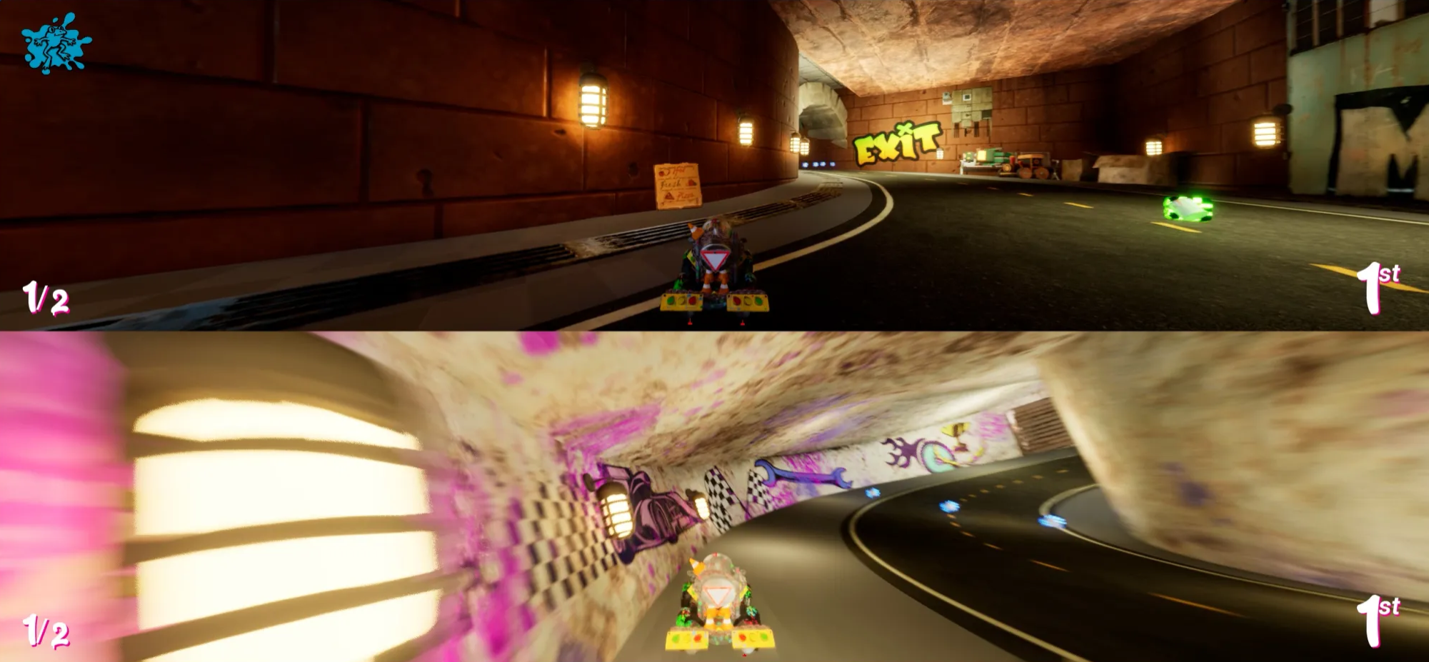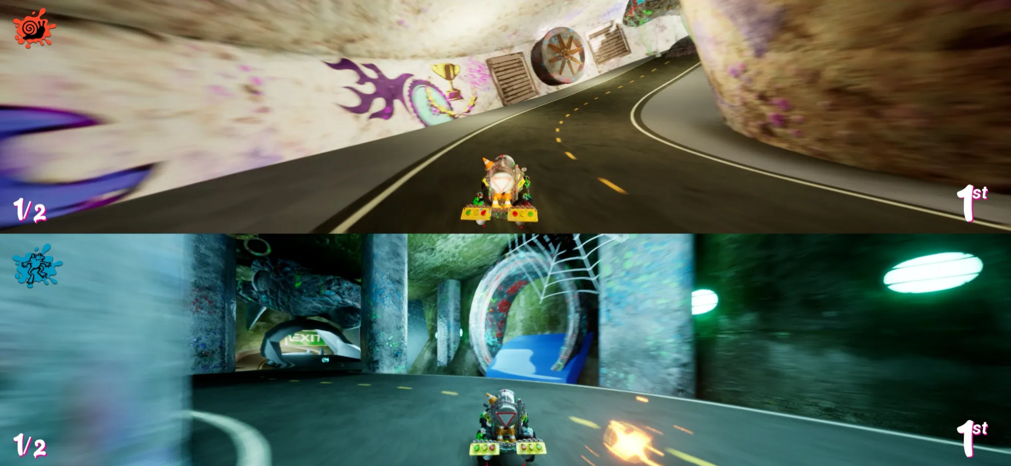 Paint Rush is a vibrant team-based couch co-op racing game where players race, shoot paint, and twist the rules to dominate tracks.